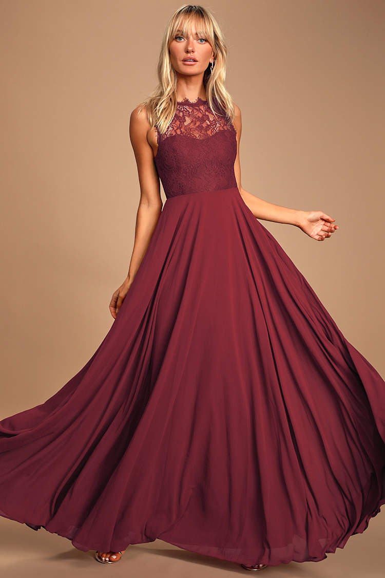 Lovely Lace Dress Burgundy Maxi Dress Prom Dress Gown Lulus
